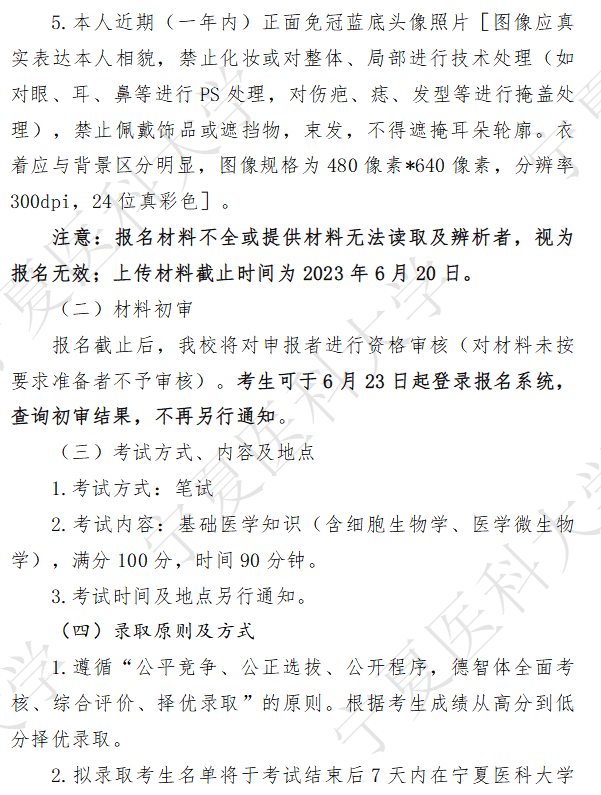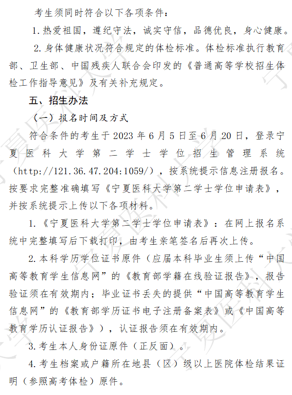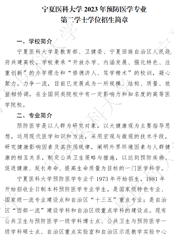宁夏医科大学2023年预防医学专业第二学士学位招生简章